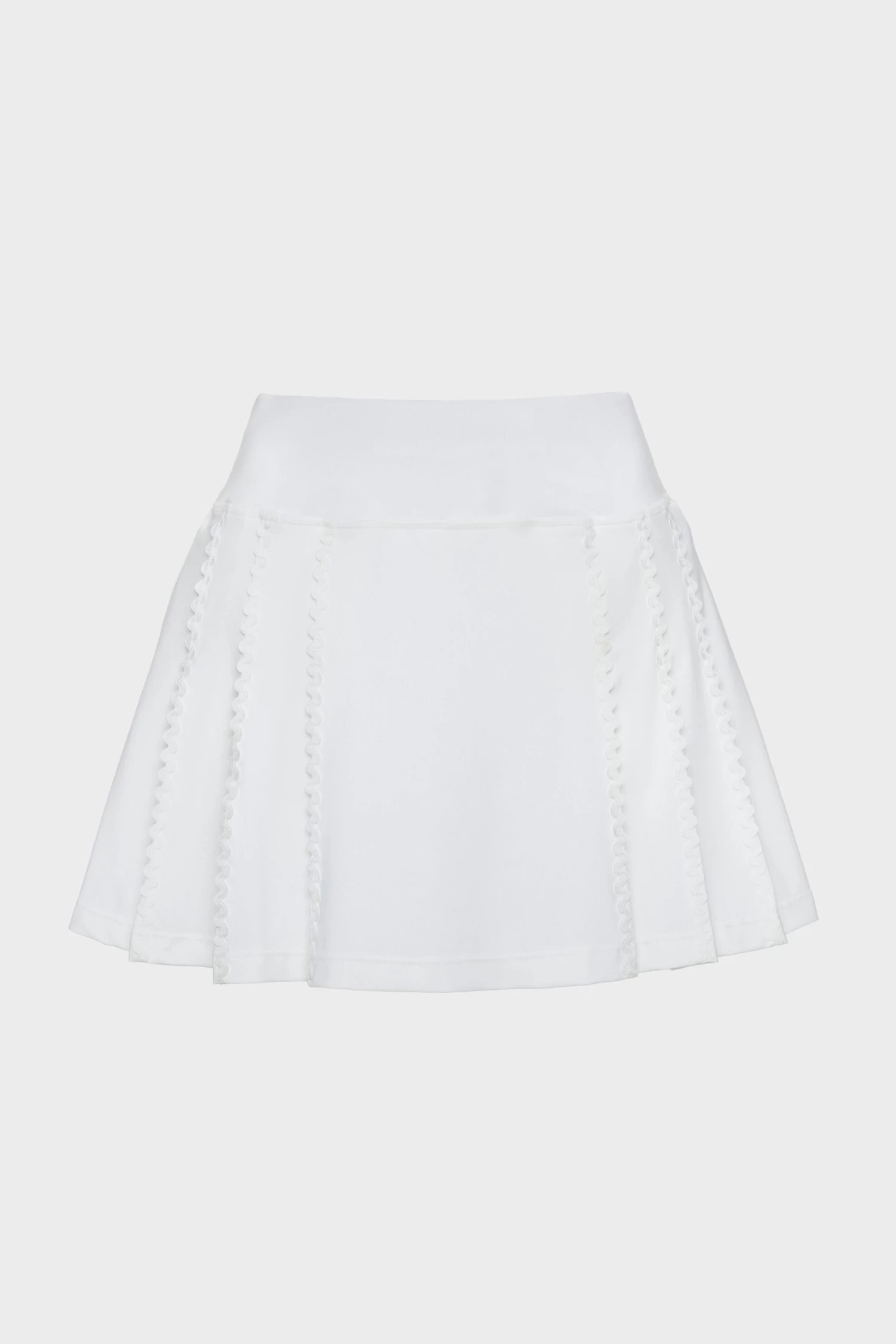 A classic all-American style, the White Ric Rac 14 Inch Lydia Tennis Skirt is an adorable mini that you can wear on and off the courts. An elastic waistband and compression undershorts allow for comfort and ease so that you can perform your best, and the front pleating with ric rac trim adds a feminine element so that you can look cute while winning!